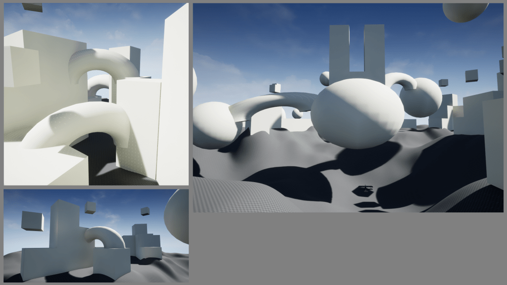 I also created some quicker paint overs of 3D blockouts provided by one of the 3D artists on the team. This helped with demonstrating what these environments could eventually look like in game. As well as providing a reference of what the 3D artists on the team should aim for as we fleshed out the test levels.